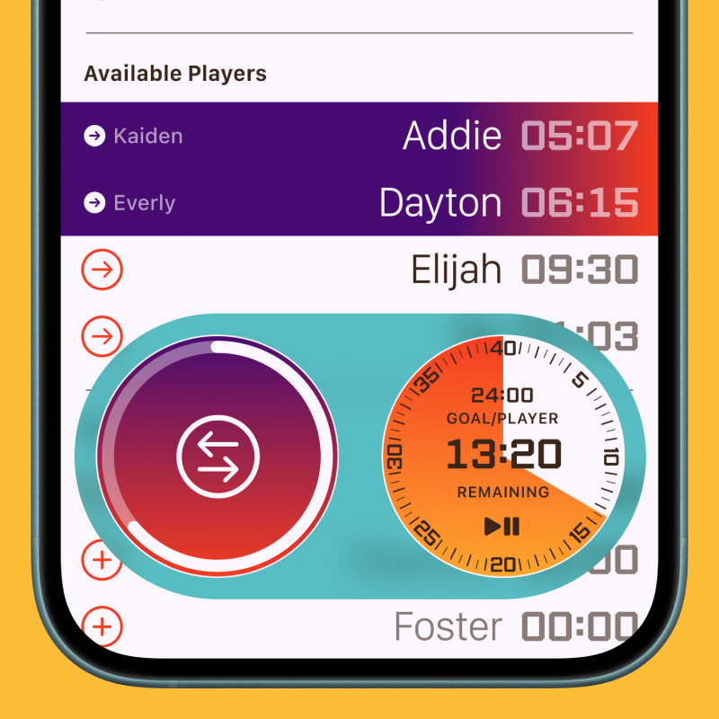 One top of that, you’re managing hydration, keeping spirits up, helping with skinned knees and untied shoelaces. Shoelaces are a constant challenge! So as a coach on the sidelines you have a lot to deal with, in the moment-to-moment. It can be really easy to lose track of who’s been playing and for how long which leads to complications: are they tired? Are they thirsty? Are they sitting bored on the sidelines because they aren’t playing?